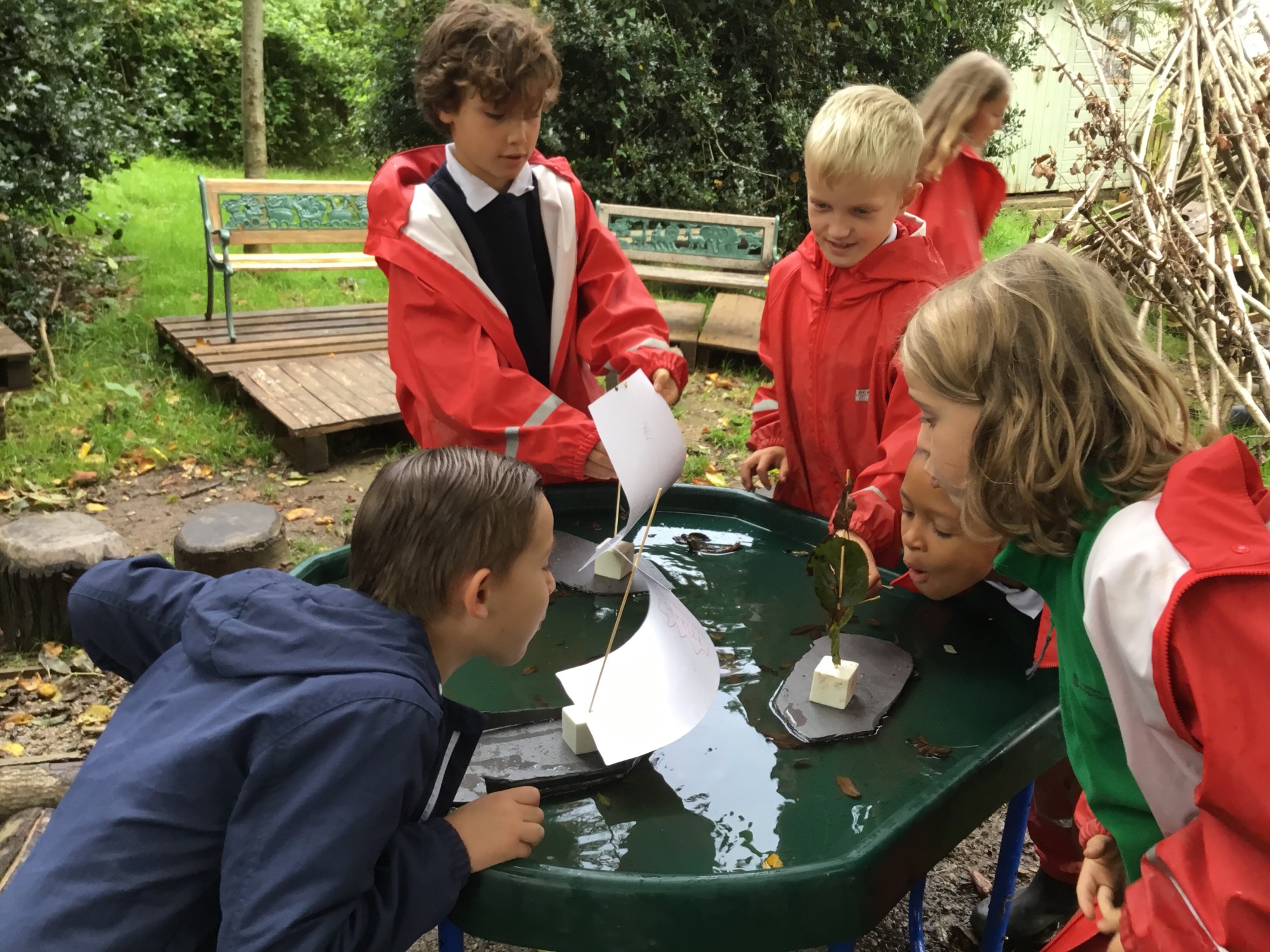Today at Forest School we were set the challenge to make a boat to race. In groups we explored streamlined shapes and conducted our own mini -investigation about which shapes fall fastest. We then discussed the best shape, for our boat design, to minimise the effect of water resistance.